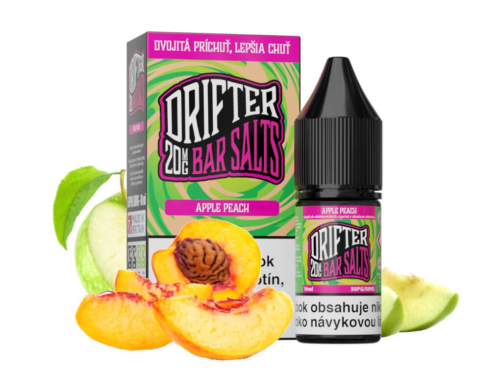 E-liquid Drifter Bar Salt Apple Peach od Juice Sauz sa môže pochváliť živou jablkovou príchuťou so silnou broskyňovou dochuťou.