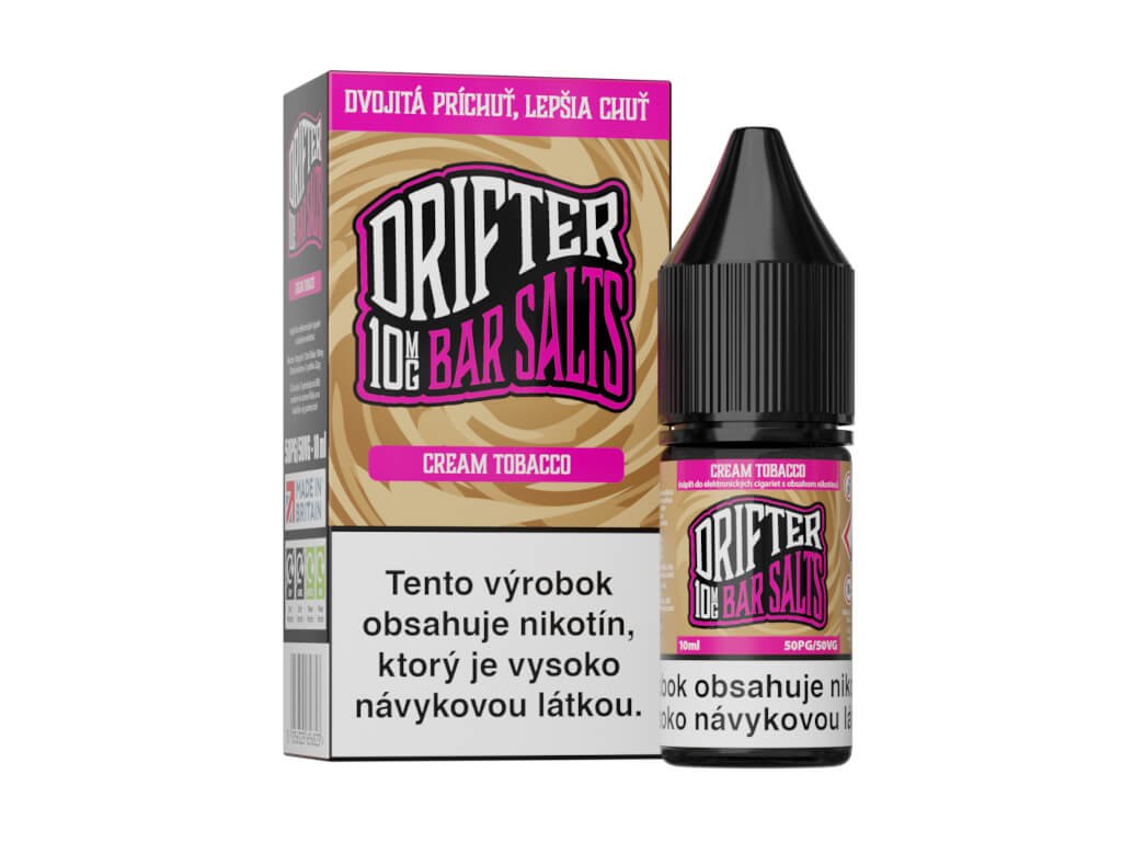 E-liquid Drifter Bar Salt Cream Tobacco - zažite jemnosť tabaku v kombinácii s karamelovým tónom a doprajte si tak sofistikovaný a uspokojujúci zážitok z vapovania.