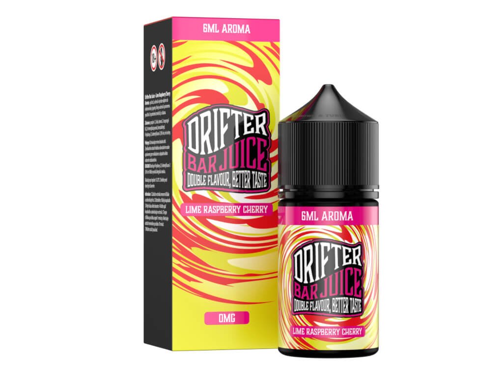 6/30ml longfill príchuť Drifter Lime Raspberry Cherry je súčasťou značky Drifter Bar Juice, anglického výrobcu aróm, longfill príchutí, e-náplní a shortfill koncentrovaných náplní, výrobcu Juice Sauz Ltd.